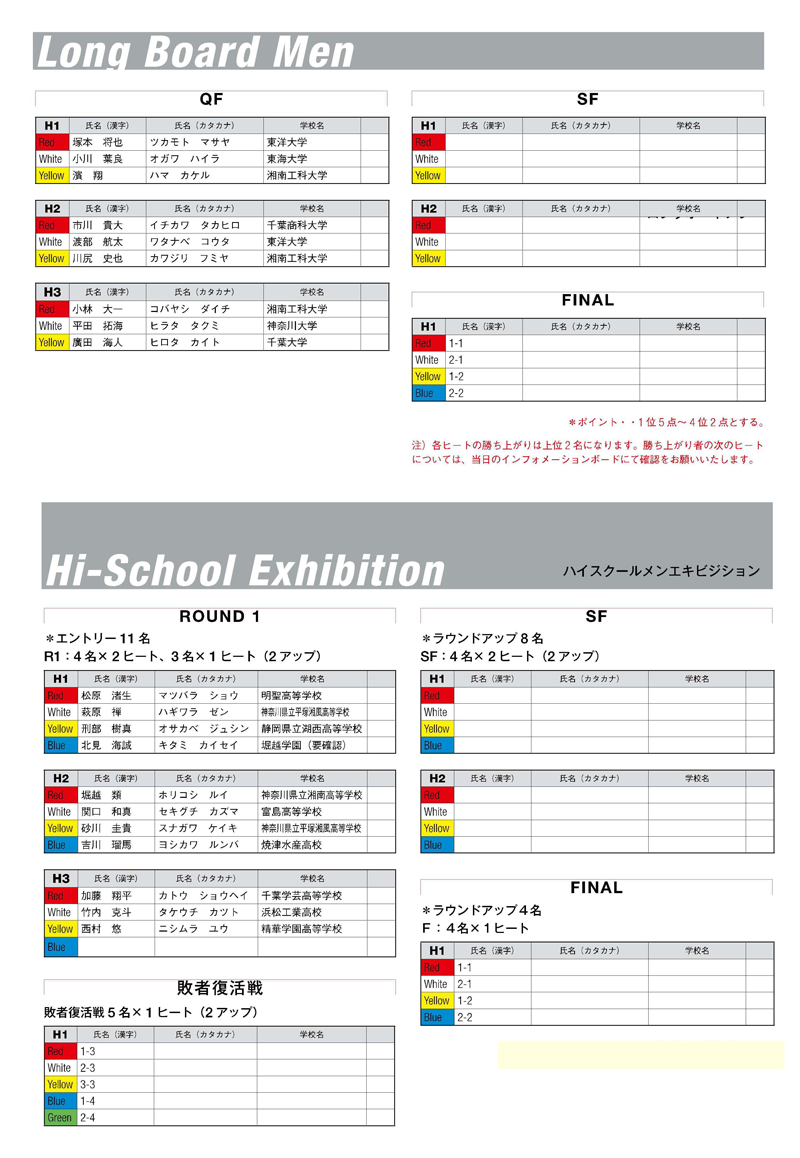 第48回全日本学生サーフィン選手権秋季大会 スケジュール及びヒート表