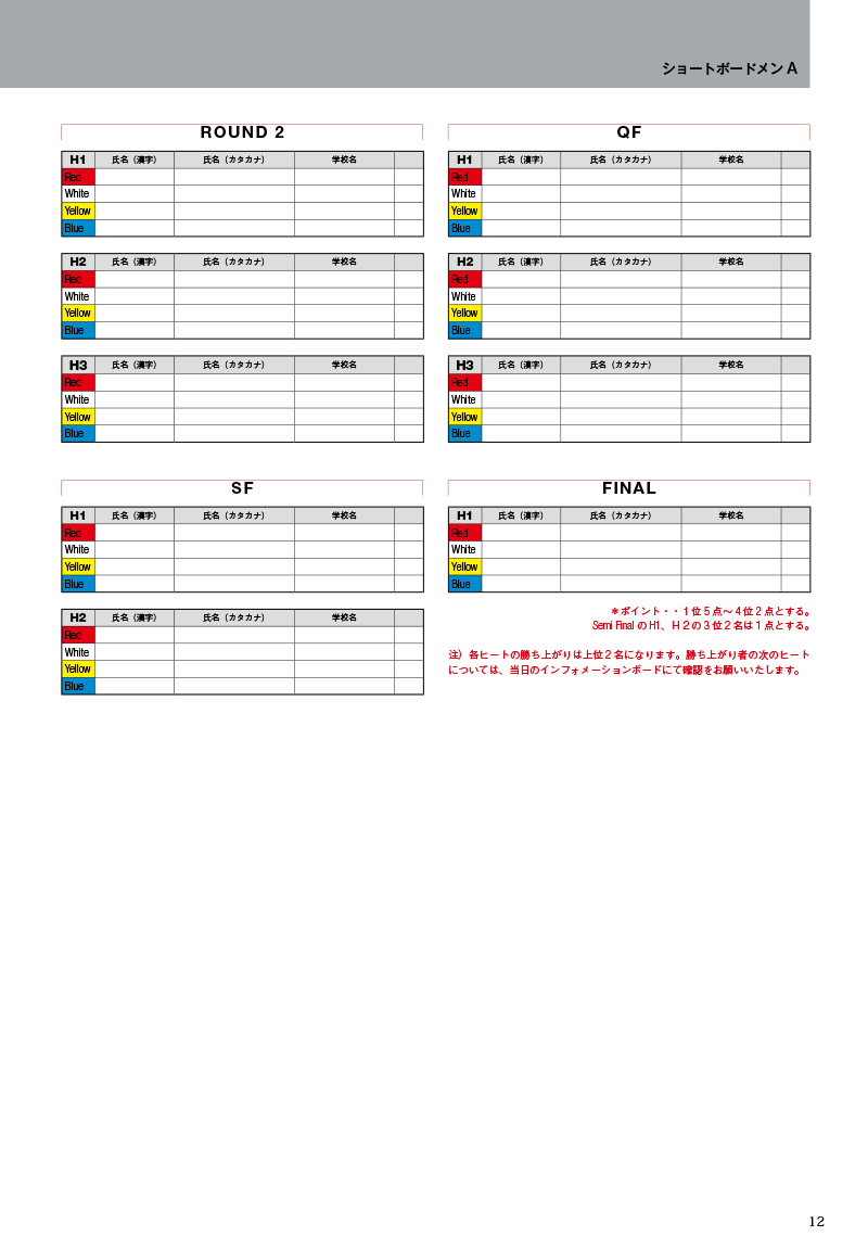 第48回全日本学生サーフィン選手権秋季大会 スケジュール及びヒート表