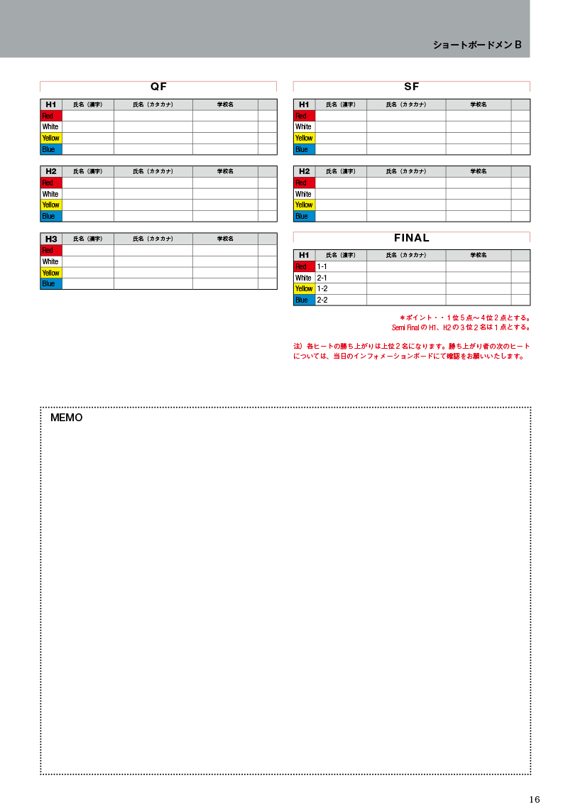 第48回全日本学生サーフィン選手権秋季大会 スケジュール及びヒート表