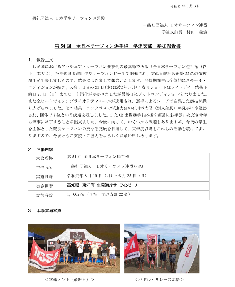 第54回全日本サーフィン選手権 学連支部 参加報告